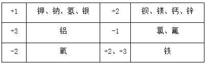 一价钾钠氢与银,二价钙镁钡与锌,三价金属元素铝;