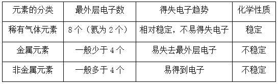 ②原子最外层电子数为8(氦为2)的结构称为稳定结构。