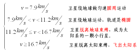 第二宇宙速度(脱离速度):11.2km/s。 使人造卫星脱离地球的引力束缚,不再绕地球运行,从地球表面发射所需的最小速度。
