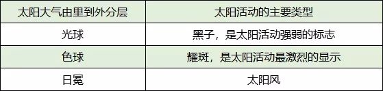 1. 太阳大气的成分主要是氢和氦;太阳辐射能量来源是核聚变反应。