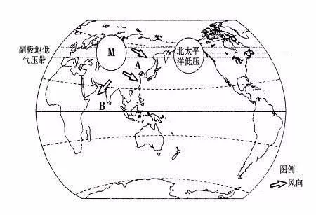 气压中心M是蒙古—西伯利亚(亚洲)高压,其切断了副极地低气压带。