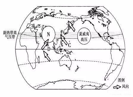 气压中心N是印度(亚洲)低压,其切断了副热带高气压带。