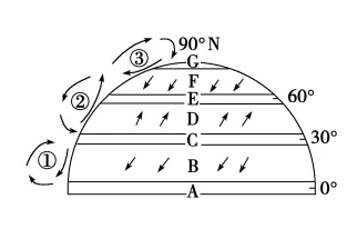 (2)若各气压带位置偏北(赤道低气压带全部位于赤道以北,副热带高气压带全部位于30°纬线以北,副极地低气压带全部位于60°纬线以北),则为北半球夏至。