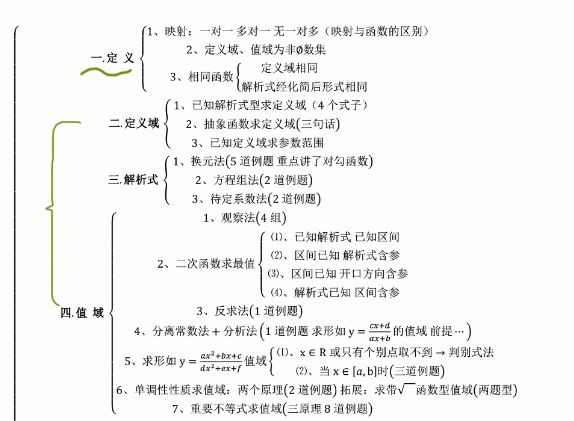 函数先看他的树枝图,第一个点要了解函数定义讲完,讲解函数三要素(定义域、解析式、值域)