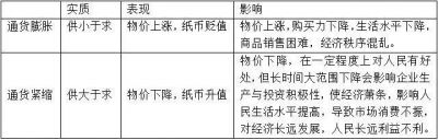②通货紧缩实质:供大于求,表现:物价下降,纸币升值。影响;物价下降,在一定程度上对人民有好处,但长时间大范围下降会影响企业生产与投资积极性,使经济萧条,影响人民生活水平提高,导致市场消费不振,对经济长远发展,人民长远利益不利。