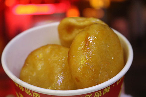 油煎食物和薯片,可以用手拿着吃,也可以用叉子吃。假如在户外,当然可以用手拿着吃了。