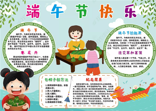 同学们,一年一度的端午节就要到了。你们想用什么方式纪念这个绵延两千年的传统佳节呢?让我们从今年端午节开始,重新拾起对中国传统节日的关注,赋予中国传统文化更多的新元素,用自己的力量,拯救传统节日习俗,发展传统节日习俗,创新传统节日习俗,让中国文化逐渐被世界上更多的人接受和认识,毕竟,“民族的就是世界的”!