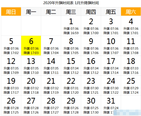 2020年2月已经是上班的时候了,这时北京又多了很多人流,不变的是北京天安门升旗仪式一直在进行,当看着那面鲜红的旗帜慢慢升旗,浓浓的爱国之情油然而生,在北京的朋友一定不要错过。那么,2020年2月升国旗时间都在什么时候呢?下面是小编为大家收集的关于2020年2月北京升国旗时间一览表_北京升国旗时间几点去好。希望可以帮助大家。